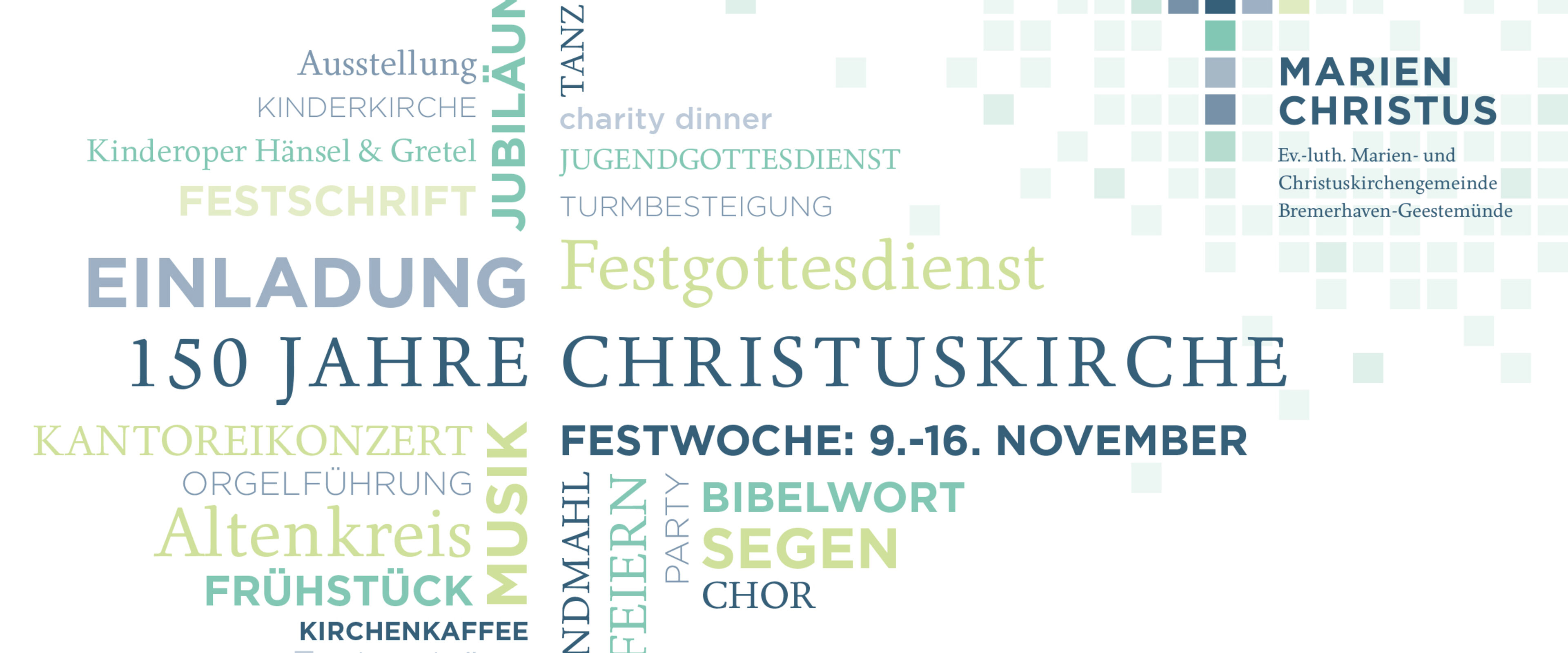 Die Christuskirche feiert in diesem Jahr ihr 150-jähriges Jubiläum. Das wollen wir feiern - feiern Sie mit!