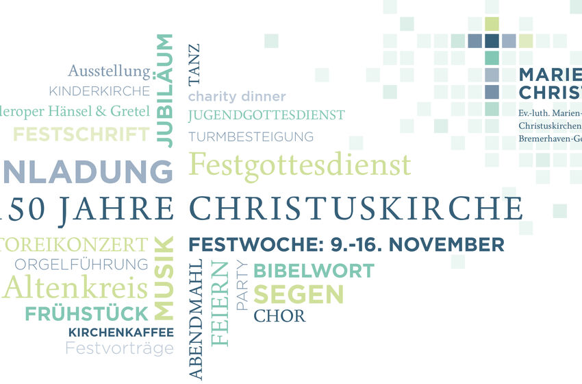 Die Ev.-luth. Christuskirche in Geestemünde feiert in diesem Jahr ihr 150-jähriges Bestehen, daher lädt die Marien- und Christuskirchengemeinde vom 9. bis 16. November 2025 zu einer großen ...