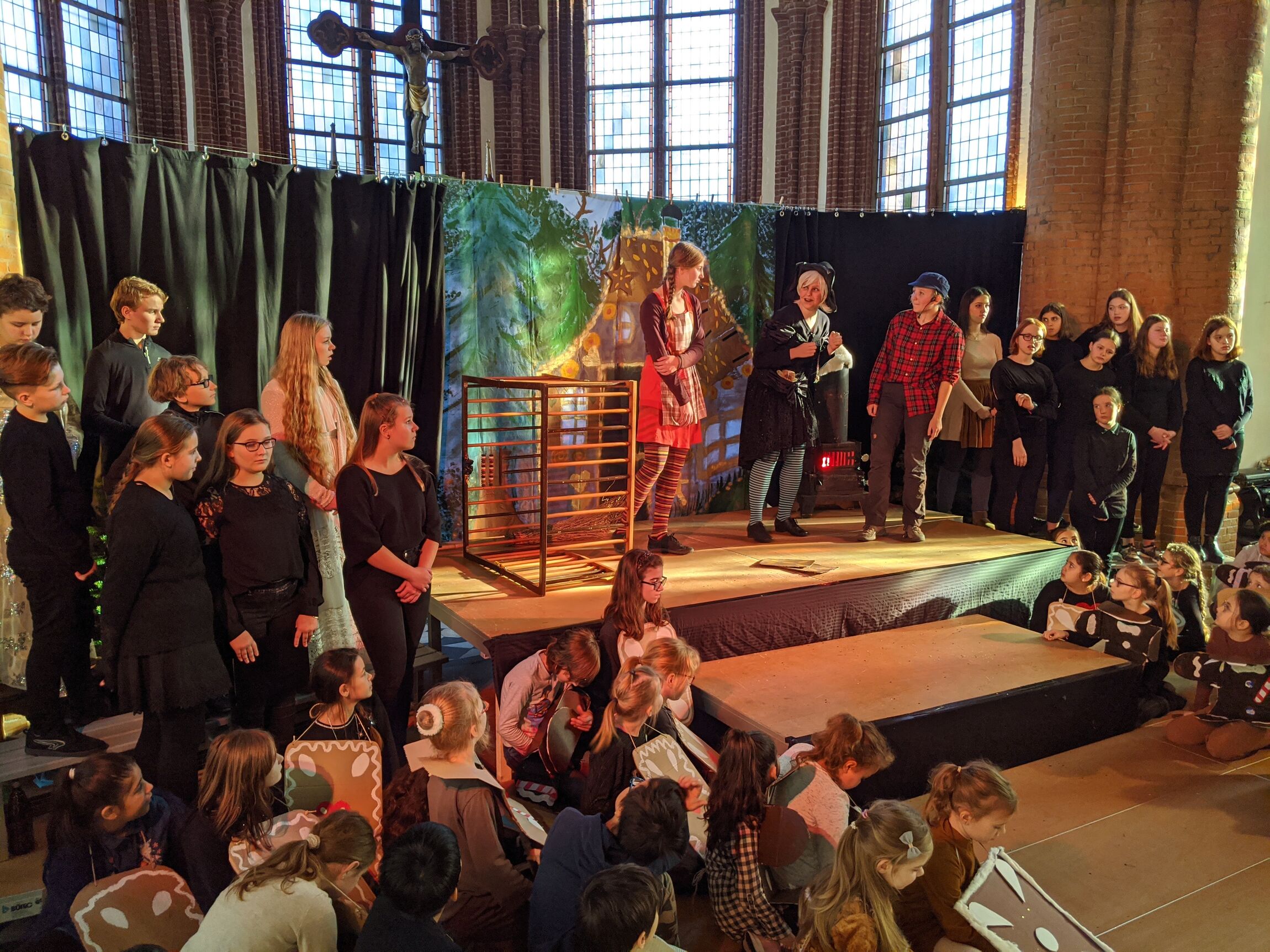 Es singen und musizieren als Engel und Lebkuchen die Kinder- und Jugendchöre der Christuskirche zusammen mit einem kleinen Orchester. In den Hauptrollen sind die Jugendlichen des Jugendchores 2 zu sehen, die die beliebten Rollen Hänsel, Gretel, Vater, Mutter, Sandmann, Taumann und vor allem die schillernde Gestalt der Hexe singen und darstellen werden.