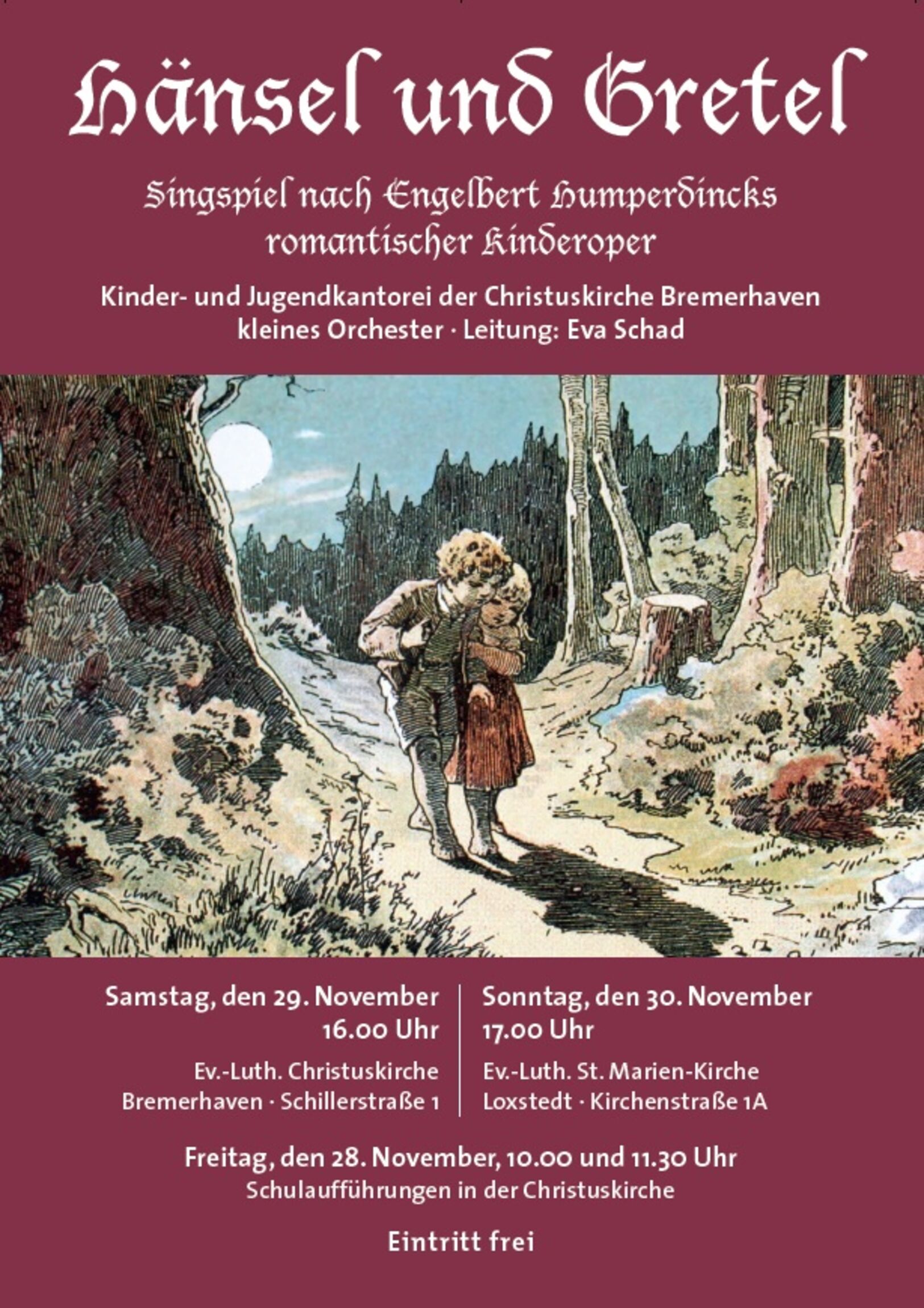 Außerdem folgt am Sonntag, den 30. November um 17.00 Uhr eine 4. Aufführung in der ev. Kirchen in Loxstedt.