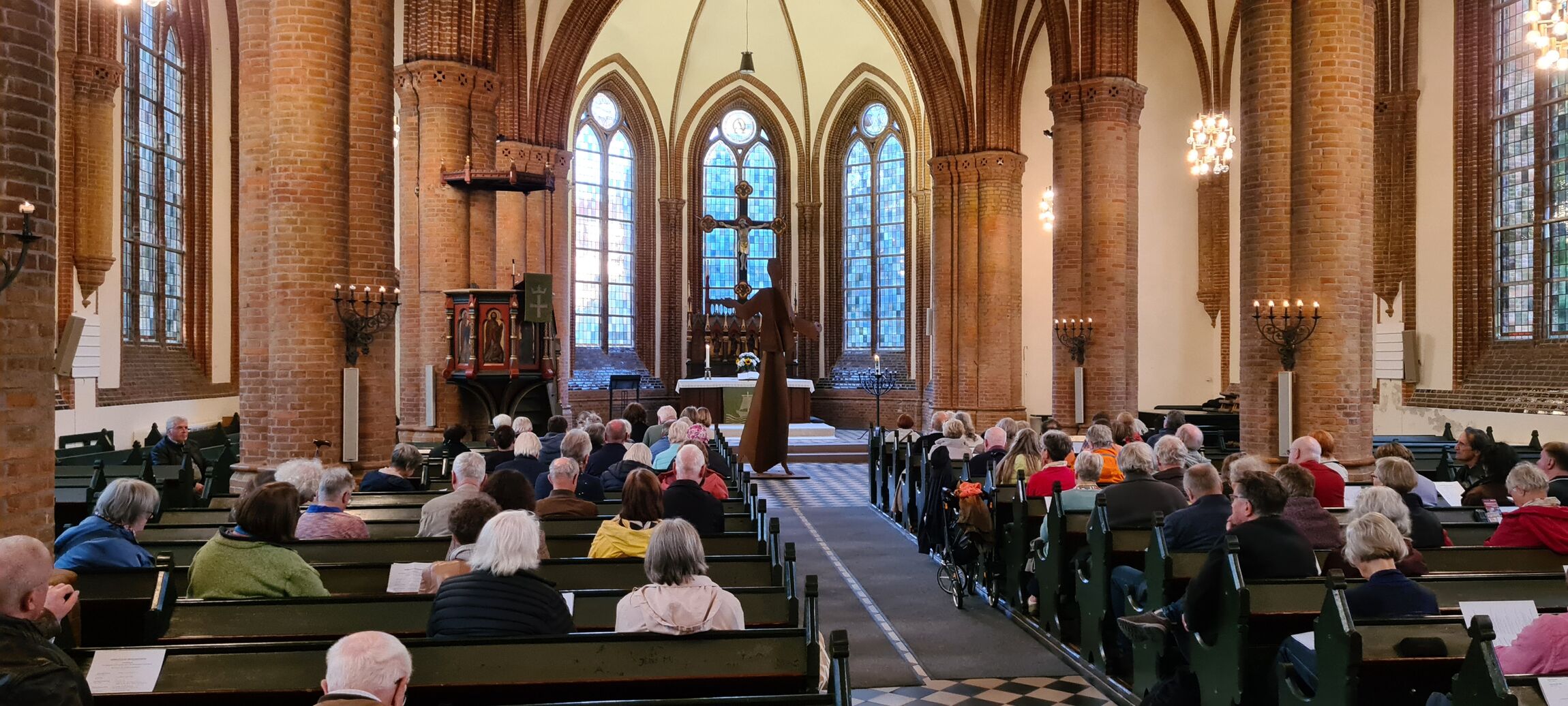 Kreiskantorin Eva Schad wies bei der Begrüßung darauf hin, dass viele der Zuhörerinnen und Zuhörer auch an der Orgelreise teilgenommen hatten, die bereits um 10 Uhr gestartet war und die Teilnehmenden zu den Orgeln in Neuhaus, Otterndorf und Cappel geführt hatte. Das Konzert um 18 Uhr bildete also den Abschluss dieser Orgelreise, zugleich aber auch den Auftakt der Bremerhavener Veranstaltungen zu den diesjährigen Orgelentdeckertagen. Superintendentin Susanne Wendorf-von Blumröder blickte in ihrem Grußwort auf die Ausstellung des „Tanzenden Christus“ zurück: Die von der Künstlerin Hilke Leu geschaffene Skulptur des „Tanzenden Christus“ war im September in der Christuskirche zu sehen und hatte bei verschiedenen Veranstaltungen dazu eingeladen, über das Verhältnis von Tanz und Spiritualität nachzudenken. Die Skulptur erzeugt auch beim Konzert am 28. September einen anregenden Resonanzraum: Die von Wolfgang Zerer gespielte Musik klang mal erhebend und leicht, mal düster und bedrückend. Mit Blick auf die Skulptur fanden so ganz verschiedene Stimmungen und Gefühle in der Kirche ihren Platz. Das Konzert endete nach dem begeisterten Applaus der Teilnehmenden mit einem Sektempfang und der Möglichkeit, die Hillebrand-Orgel bei einer Führung aus der Nähe zu erkunden.