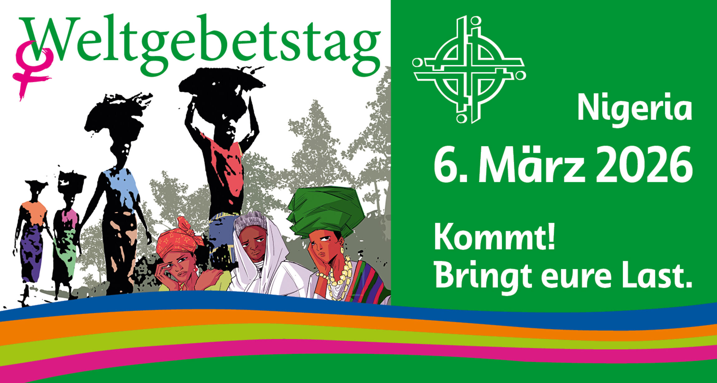 Das Motto des diesjährigen Weltgebetstags lautet „Kommt! Bringt eure Last.“, angelehnt an Mt 11,28-30. In Nigeria werden Lasten von Männern, Kindern, vor allem aber von Frauen auf dem Kopf transportiert. Doch es gibt auch unsichtbare Lasten wie Armut und Gewalt. Das facettenreiche Land ist geprägt von sozialen, ethnischen und religiösen Spannungen. Hoffnung schenkt vielen Menschen in dieser existenzbedrohenden Situation ihr Glaube.